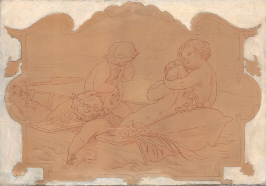 Na loďce, z cyklu Život na panském sídle, návrh nástěnné malby