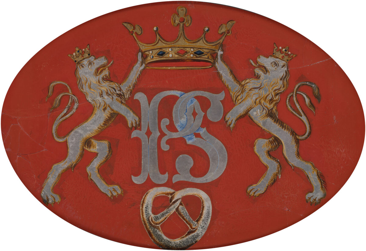 Štít Pekařského spolku Autor: Anonym Sbírka: spolky a společenstva Materiál: sklo Technika: olej, zlacení Datace: 19. století Inventární číslo: HD 001 861_001Datace (rok): 19. stoletíRozměry: v-cm=54cm; š?=78,5 Zpět na výpis