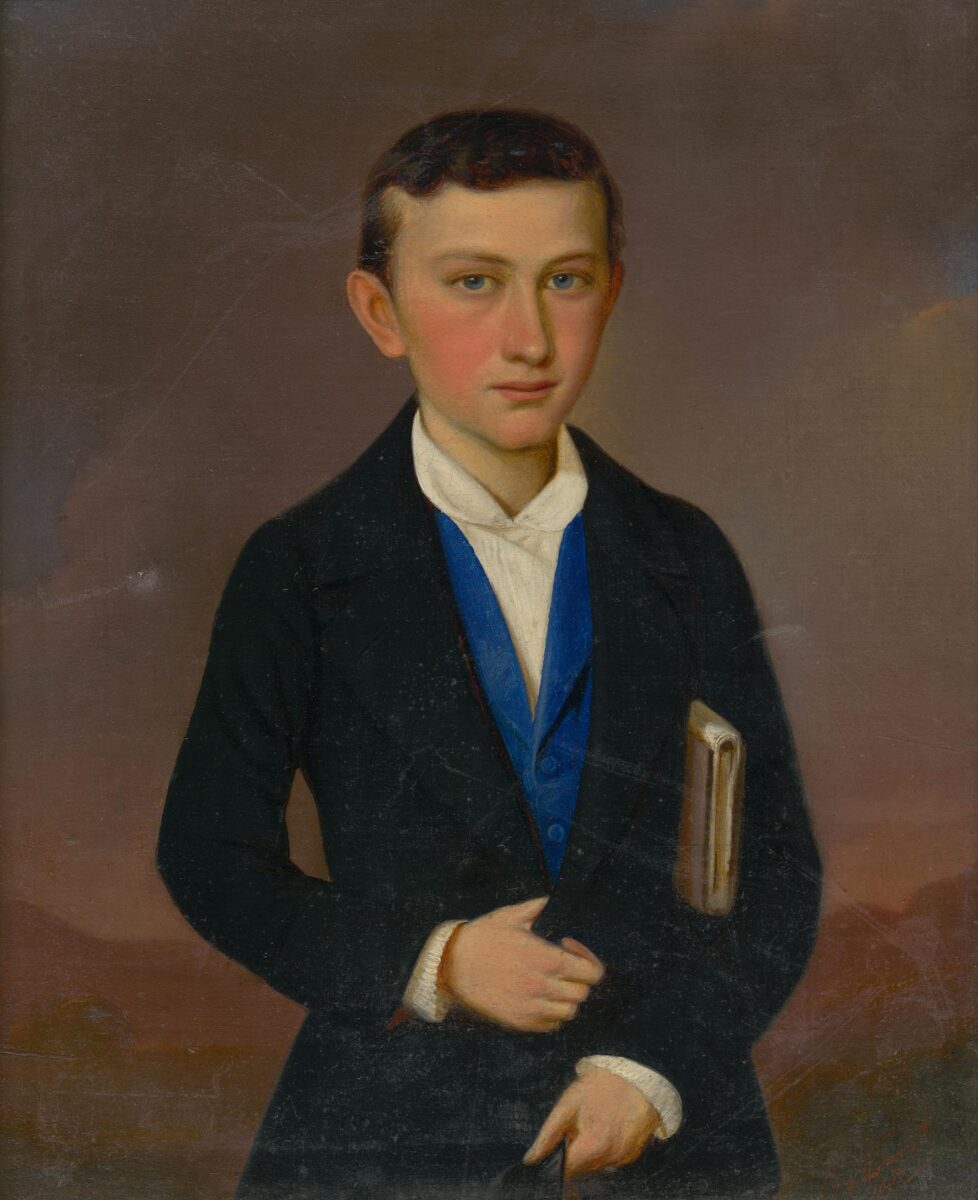 Student s knihou Autor: Jan Václav Mysliveček old Sbírka: malba Materiál: plátno Technika: olej Datace: 19. století Inventární číslo: H 020 129Datace (rok): 1856Rozměry: rv.=44cm; rš.=37cm; v-cm=30cm; š-cm=24cm Zpět na výpis